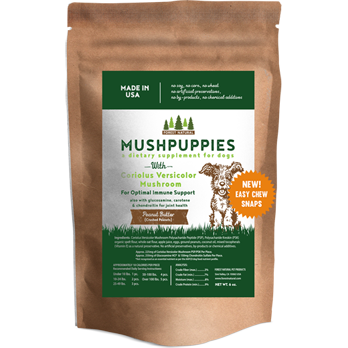 Easy to chew and snaps in two! Introducing our newest breakthrough in functional pet supplements—Easy Chew Snaps MushPuppies! Specially formulated for dogs with sensitive teeth or chewing difficulties, these thinner, softer chews are designed to snap in half with ease, giving pet parents flexibility. Now with a darker color and slimmer shape—they deliver the same trusted benefits as our original MushPuppies, including Coriolus Versicolor for powerful immune support, plus Chondroitin, Glucosamine, and Carotene for joint and bone health in a more convenient and accessible form, because every dog deserves wellness made easy.