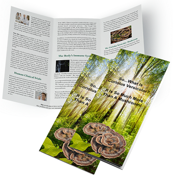 So…What Is Coriolus Versicolor? It Is So Much More Than A Mushroom! These handy, informative brochures will lay out the facts for you making it easy to hand them out to people sharing the wonderful health benefits of this amazing mushroom.